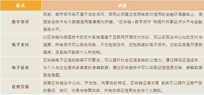 區(qū)塊鏈在金融領(lǐng)域的技術(shù)結(jié)合目前相對其它產(chǎn)業(yè)較為成熟。“區(qū)塊鏈+”作為金融科技的底層技術(shù)架構(gòu),可以通過多種形式改變以至重塑金融業(yè)運(yùn)行模式,主要包括以下幾個方面