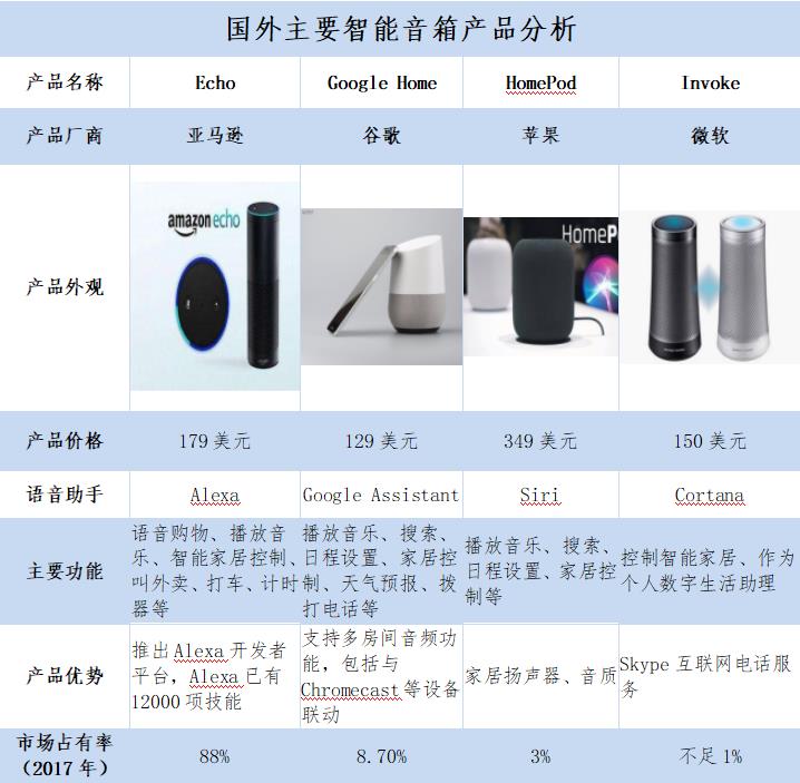 三、國(guó)內(nèi)外主流智能音箱產(chǎn)品及廠商情況分析