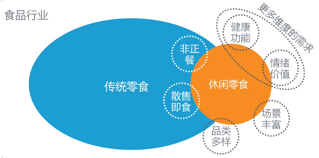 目前行業(yè)專(zhuān)家和資深從業(yè)者,往往認(rèn)為“休閑零食”和“休閑食品”,甚至是“零食”這樣的產(chǎn)品概念雖然互有區(qū)別,但某種意義上又是互相交融的,畢竟不同的概念也處在不停的變動(dòng)中,舊的概念在升級(jí),新的概念在擴(kuò)展: