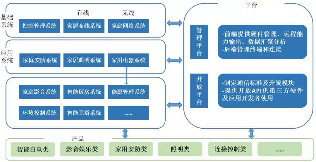 智能家居平臺(tái)的概念與Facebook、蘋果App應(yīng)用商店類似,智能家居平臺(tái)商制定通信標(biāo)準(zhǔn)及開發(fā)模塊等,然后提供開放API(應(yīng)用程序編程接口)供第三方硬件及應(yīng)用開發(fā)者使用,所有的硬件及應(yīng)用產(chǎn)品就可以無縫連接至平臺(tái)操作系統(tǒng),進(jìn)而平臺(tái)商、第三方硬件及應(yīng)用開發(fā)者、用戶構(gòu)成一個(gè)全新的智能家居平臺(tái)生態(tài)鏈。目前國內(nèi)市場上活躍度比較高的有青島海爾家居集成股份有限公司、全智慧科技(北京)有限公司、美的集團(tuán)股份有限公司(公開A股)、小米科技有限責(zé)任公司、深圳市電陶思創(chuàng)科技有限公司、北京京東世紀(jì)貿(mào)易有限公司、北京百度網(wǎng)訊科技有限公司、阿里巴巴(中國)有限公司等8家企業(yè)。
