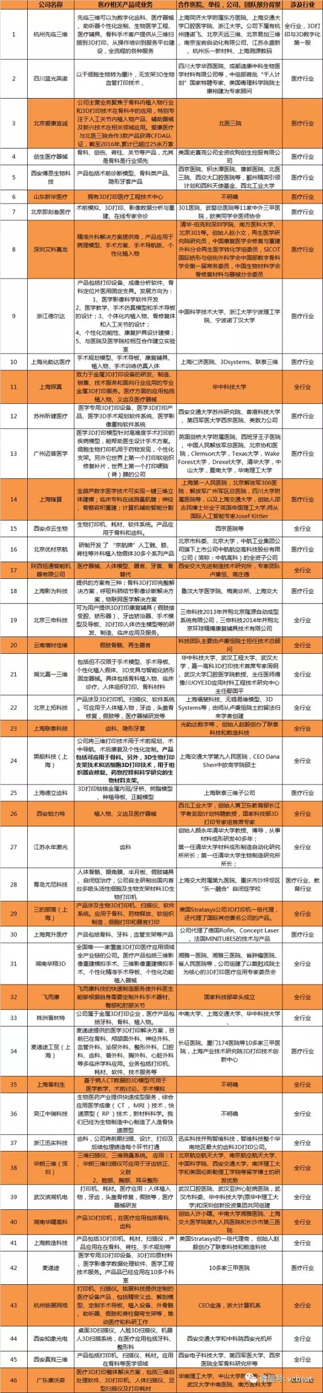 其中有26家是涉及全行業(yè)的,有20家是專門從事醫(yī)療打印的。這些企業(yè)的技術(shù)顧問大多是由盧秉恒、戴尅戎兩位院士及其學(xué)生擔(dān)任,3D打印人才則來自清華、西交大、華中科技大等9大院校。