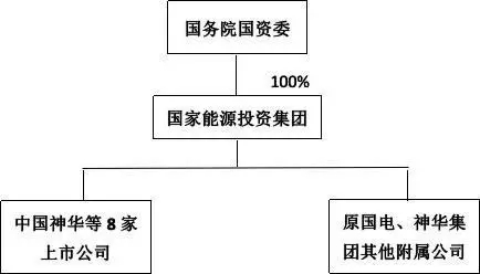 在神華集團(tuán)與國(guó)電集團(tuán)吸收合并前,國(guó)務(wù)院國(guó)資委分別持有國(guó)電集團(tuán)、神華集團(tuán)100%股權(quán)。吸收合并完成之后,國(guó)務(wù)院國(guó)資委持有國(guó)家能源投資集團(tuán)100%股權(quán)。如圖所示: