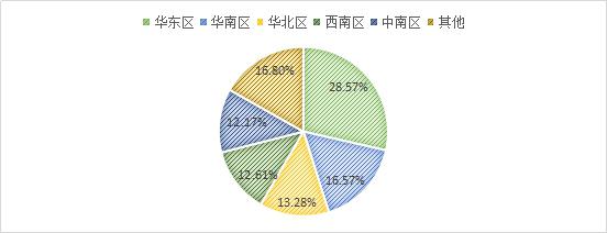 圖5、6、7是美年健康的營業(yè)收入構(gòu)成圖。按行業(yè)分,營業(yè)收入中,醫(yī)療行業(yè)占比99.55%,其他占比0.45%;按產(chǎn)品分,營業(yè)收入中,體檢服務(wù)占比99.25%,其他占比0.25%;按地區(qū)分布,營業(yè)收入中,華東區(qū)、華南區(qū)、華北區(qū)、西南區(qū)、中南區(qū)、其他分別占比為28.57%、16.57%、13.28%、12.61%、12.17%、16.80%。