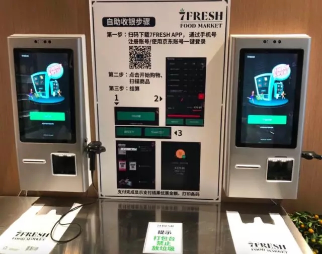 選購?fù)戤?,消費者可在7fresh店內(nèi)實現(xiàn)自助結(jié)賬。具體操作如上圖所示,掃碼下載7fresh APP,通過手機號注冊賬號,點擊開始購物,掃描商品,進行結(jié)算。但對于此全用戶手動操作的過程,如果顧客有意遺漏幾件商品的掃描與付費呢?對于此問題,京東方面回應(yīng)稱“7fresh 是面向高素質(zhì)消費群體的生鮮超市”。