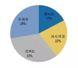 從進(jìn)口集成電路產(chǎn)品的類別來(lái)看,微處理器/控制器進(jìn)口額位列榜首,2014年價(jià)值高達(dá)1052.2億美元,占比48.33%;接著是半導(dǎo)體存儲(chǔ)器,2014年價(jià)值達(dá)542.8億美元,占比24.93%,之后是放大器,占比4.13%。